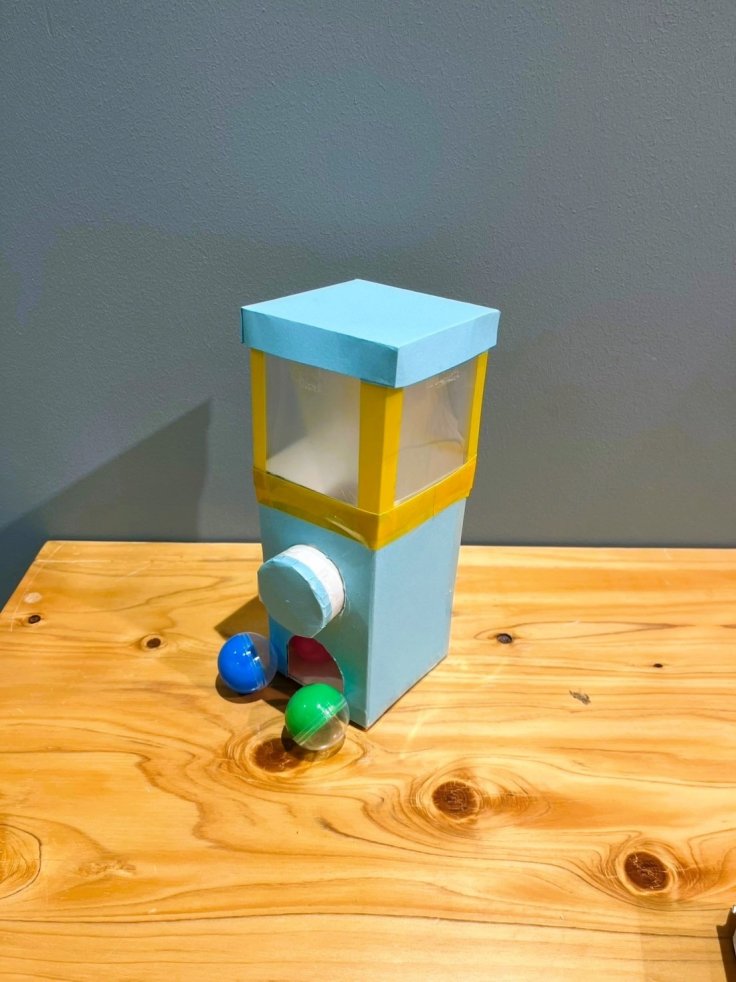 牛乳パックとクリアファイルでガチャガチャを作ります。