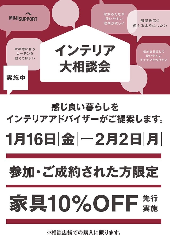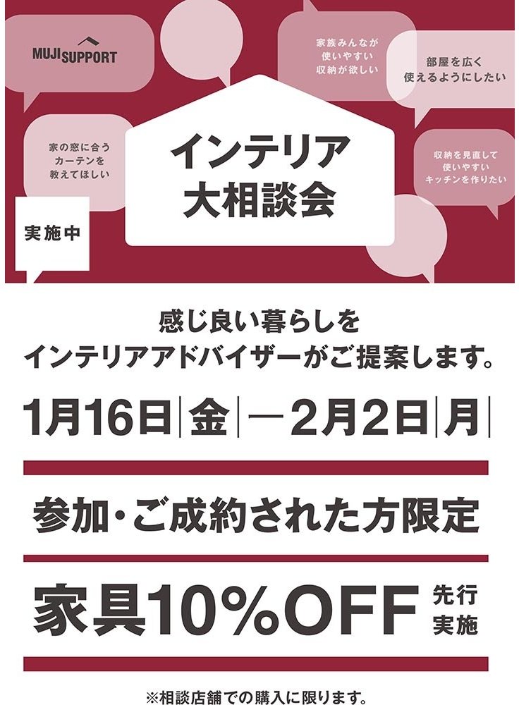 無印良品では無印良品メンバー限定で「大型家具10%オフ」を開催いたします。