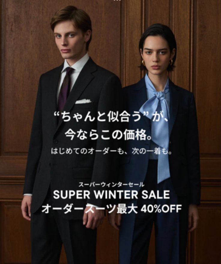 インポート生地40%OFF、国内縫製20%OFFにて上質な生地をお求め易い価格でご購入いただけます。 是非この機会にカシヤマへお越しくださいませ。