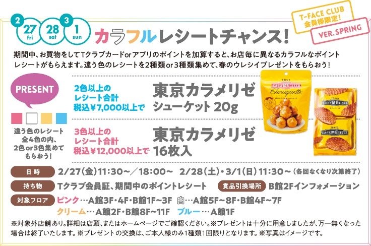 違う色のレシートを2種類or3種類集めて、春のウレシイプレゼントをもらおう!