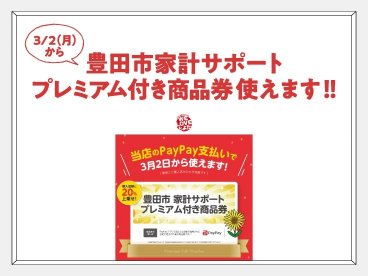 豊田市家計サポート プレミアム付き商品券 使えます!!