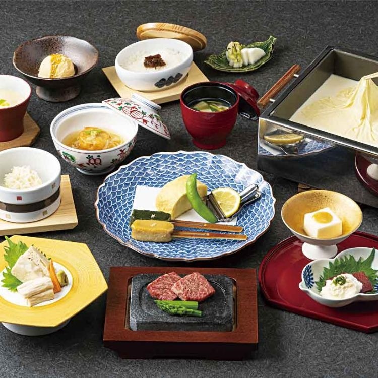 人気の引き上げ湯葉を含むコース