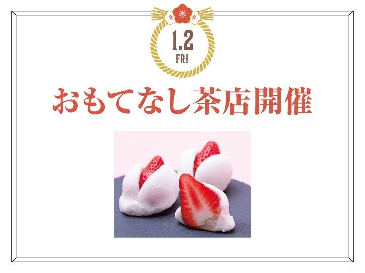 当日のお買上げレシート税込3,000円ごと(合算可)にお1人様1つ、いちご大福とお茶を進呈。